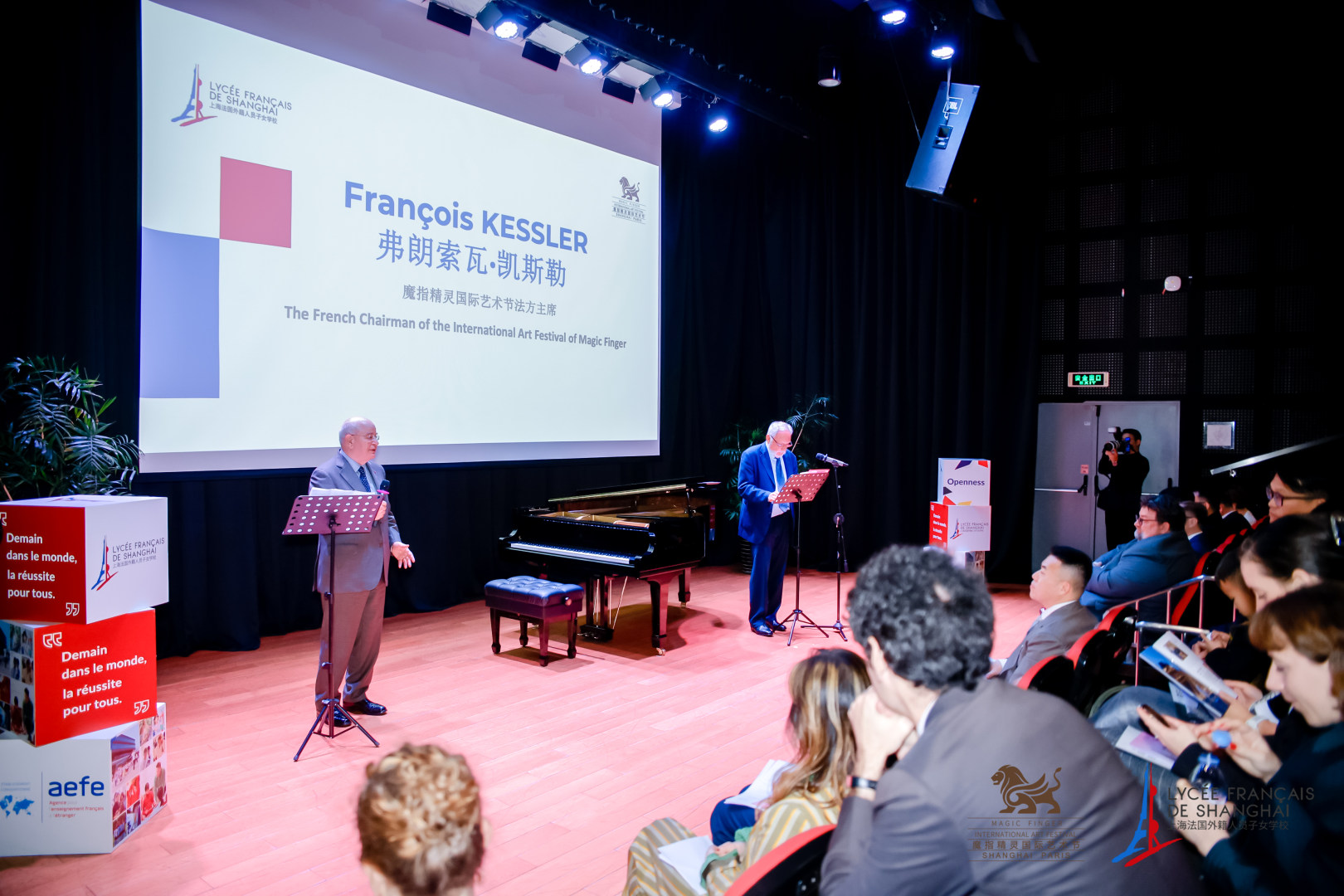 13 ноября здесь был открыт занавес на международном фестивале искусств в китае и франции. Перед началом мероприятия г-н ван ду, генеральный консул франции в шанхае, г-н бак лаомин, генеральный директор шанхайской французской школы, председатель международного фестиваля искусств "волшебные эльфы", г-н лю цзян, председатель китайской стороны, а также художественный руководитель фестиваля искусств, г-жа ли сопрано, хостел фао, выступила с речью.