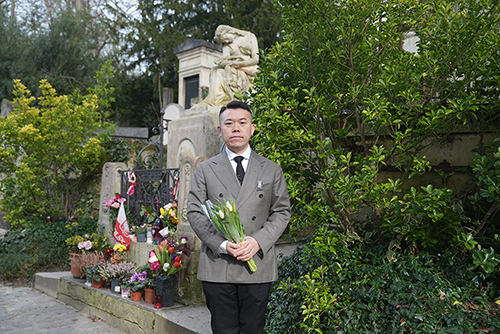 основатель лю кён предлагает цветы на кладбище шопена